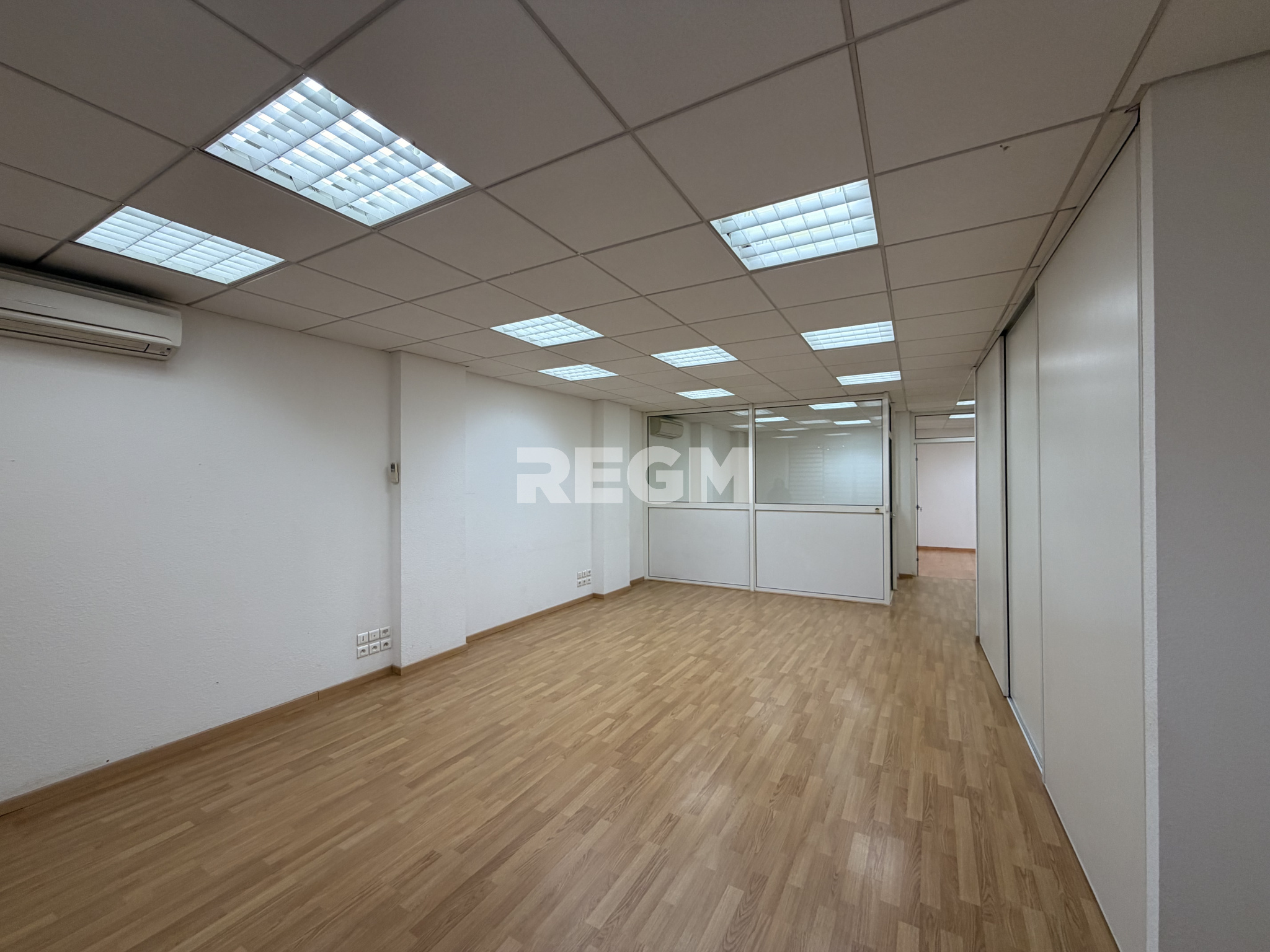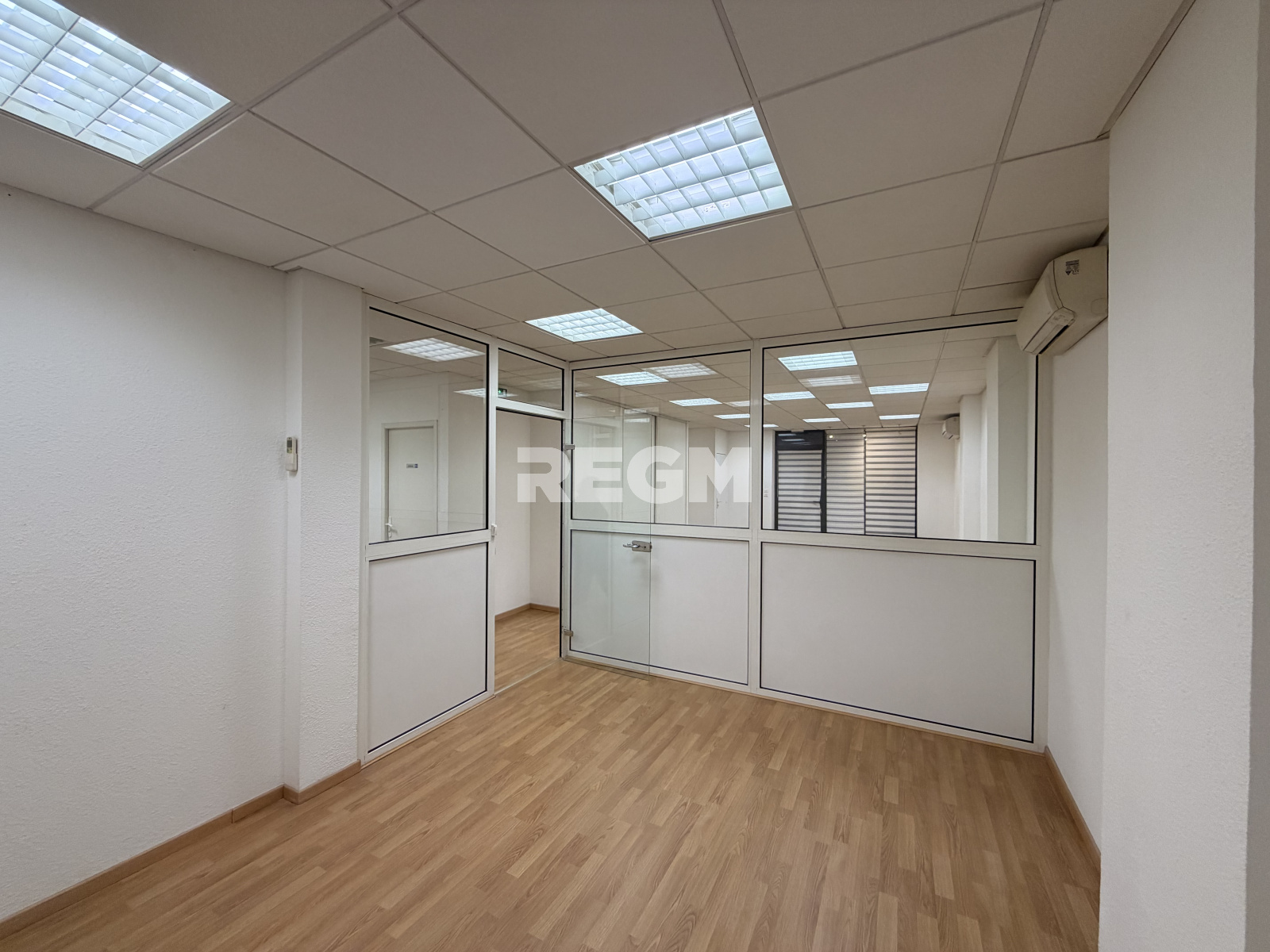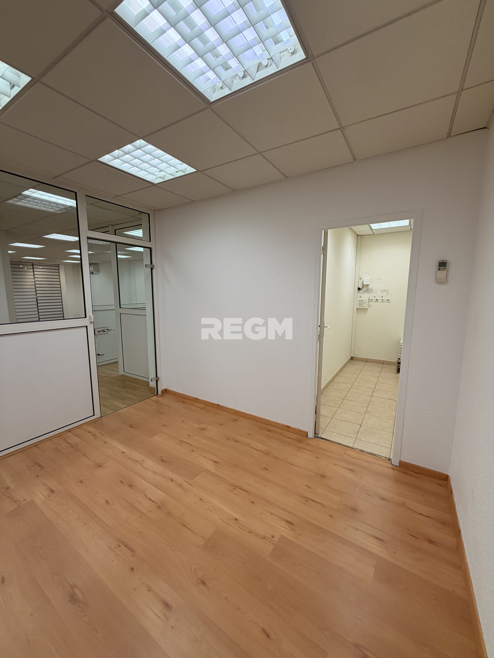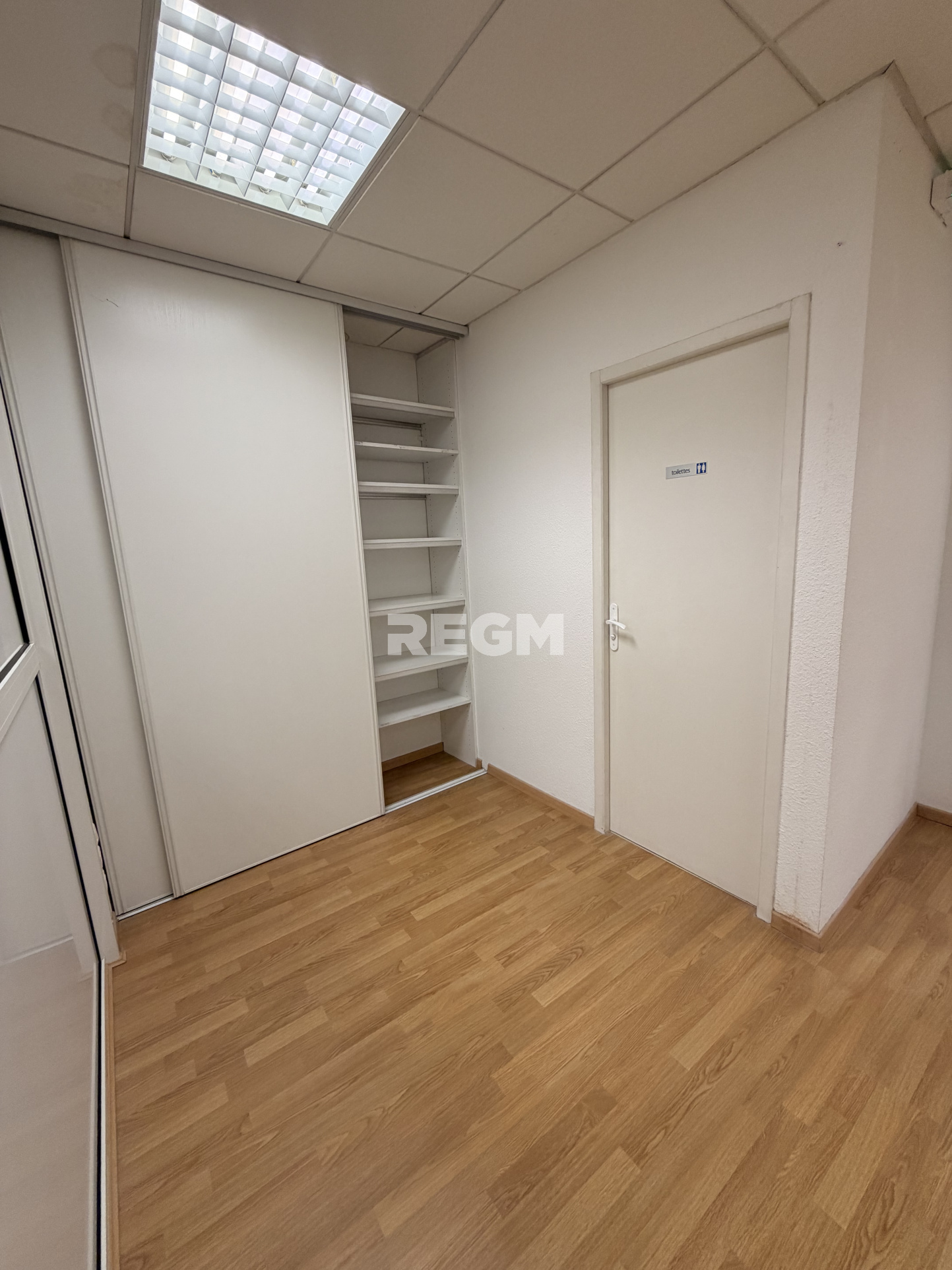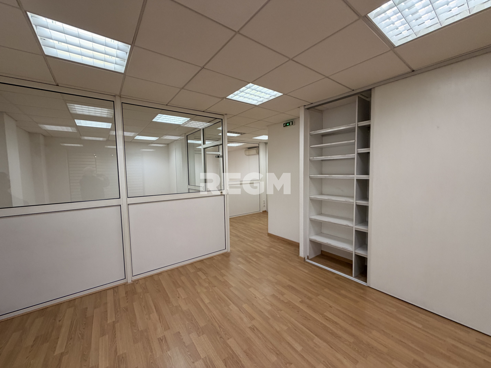 Il se compose d'une pièce principale avec rangements, ainsi que de deux bureaux fermés (cloisonnés par une verrière, pouvant être retirée selon les besoins de votre activité), ainsi qu'une réserve et un wc.