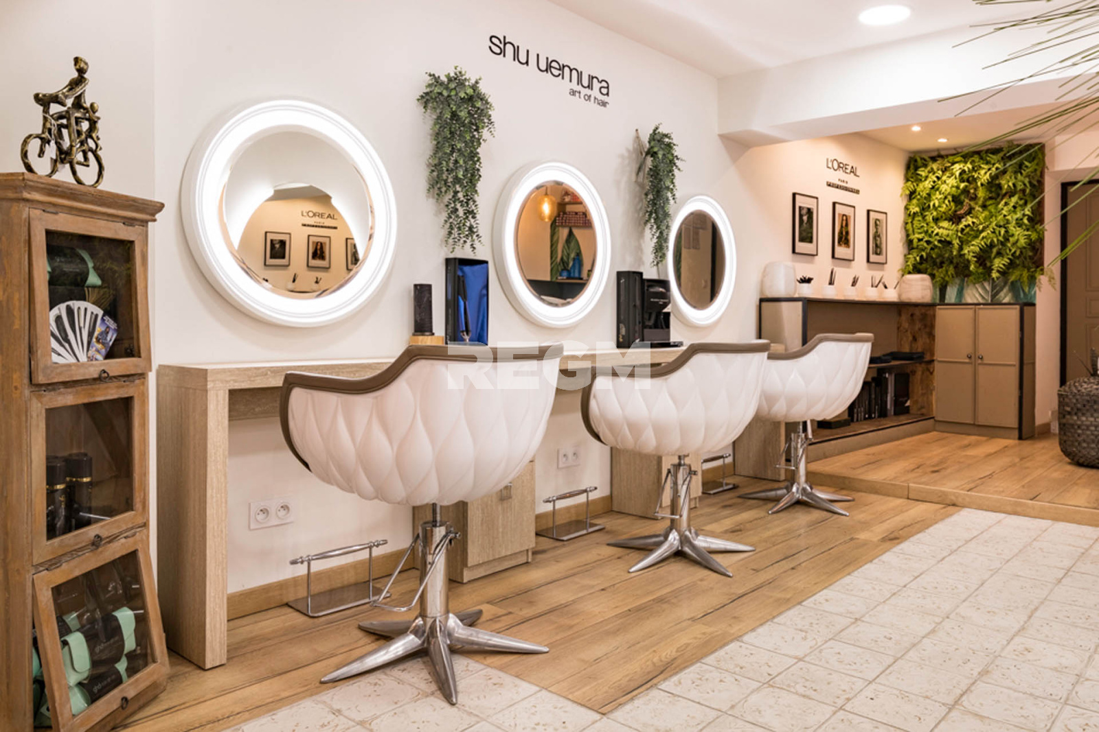 Ce charmant salon de coiffure est équipé de 7 postes de travail