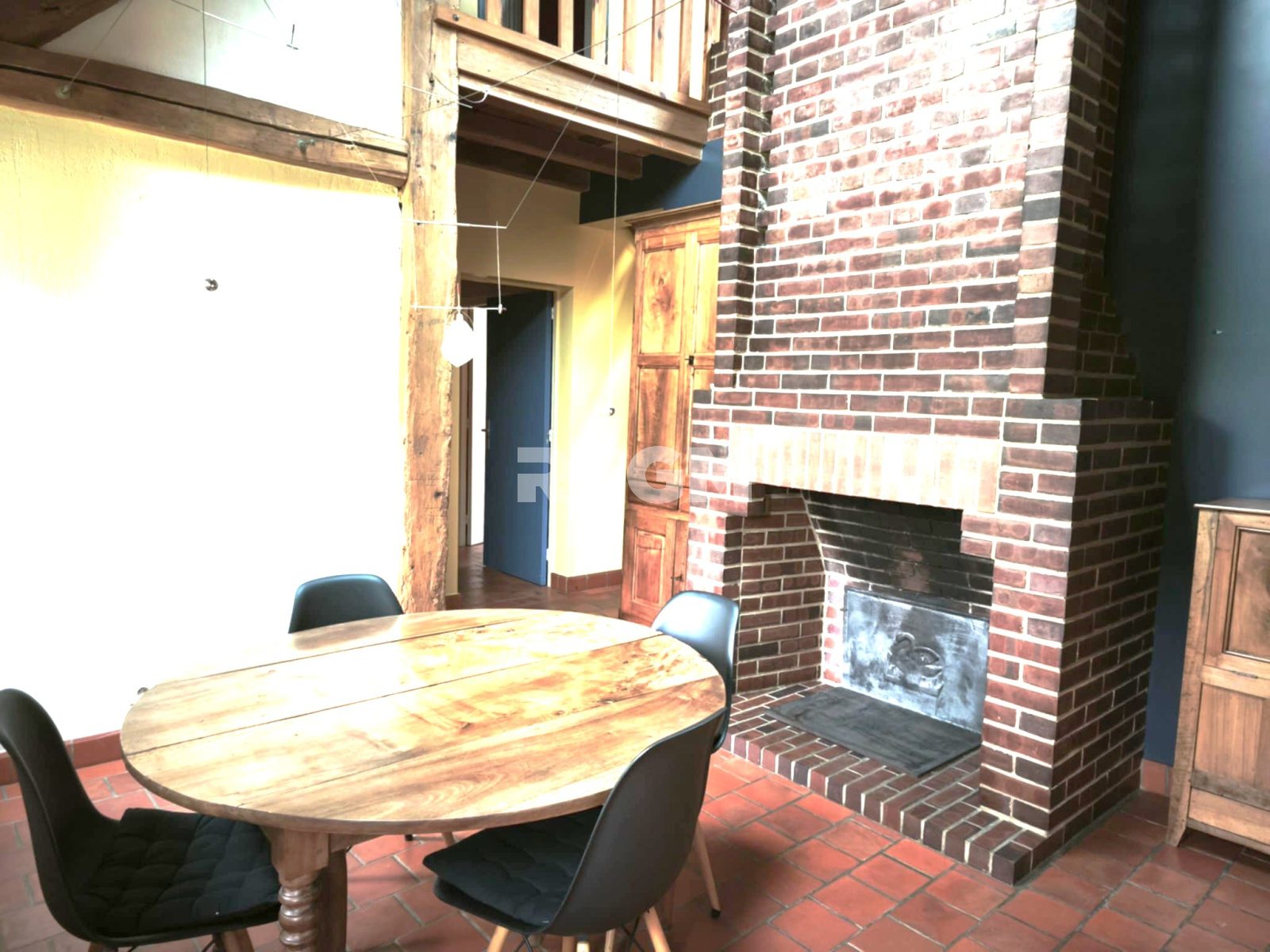 le salon /séjour, vous charmera avec sa grande cheminée en brique