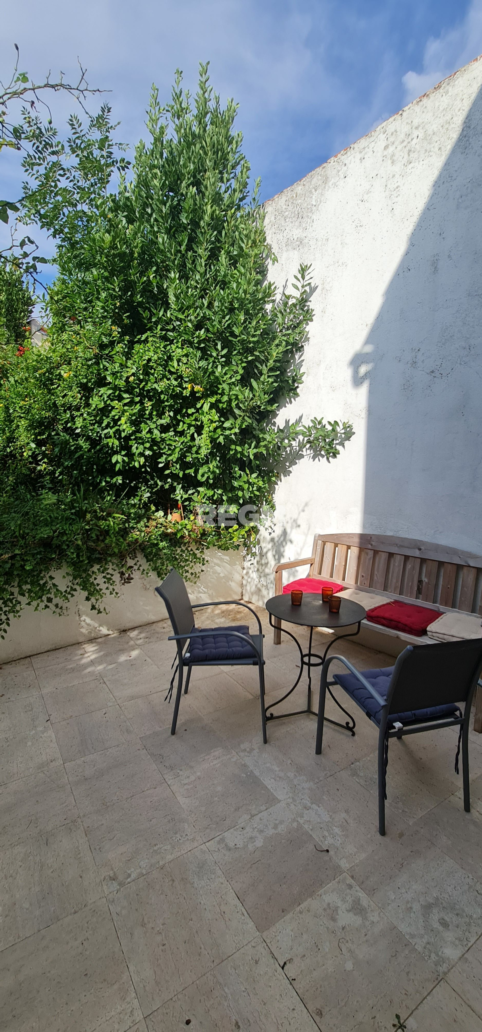 Au retour du travail profitez d'un moment de quiétude dans son jardin, véritable havre de paix au coeur de la ville. Une terrasse vous permet de siroter un verre en détente et d'admirer les arbres fruitiers, les rosiers et autres plantations qui vous séparent de la dépendance.