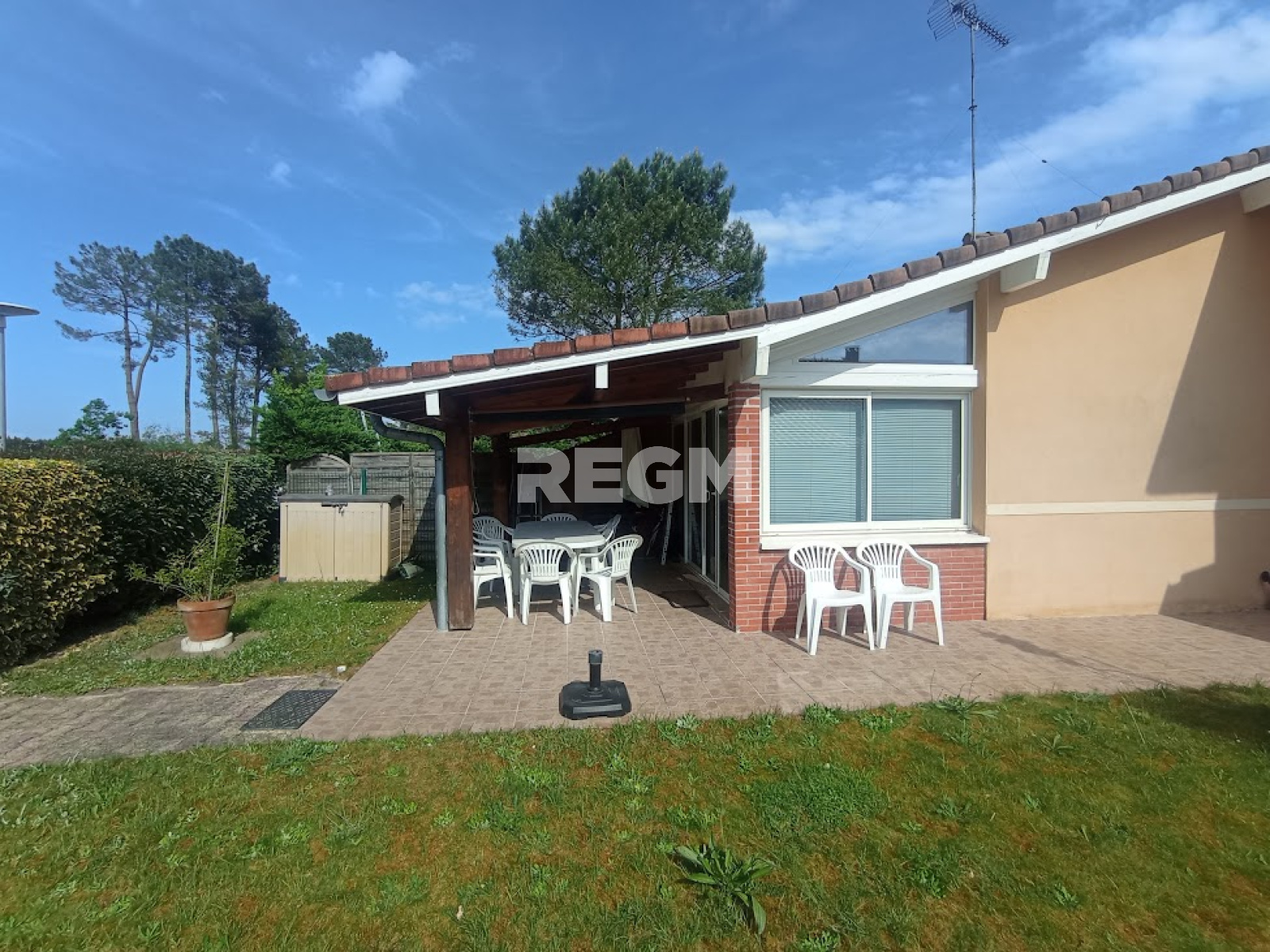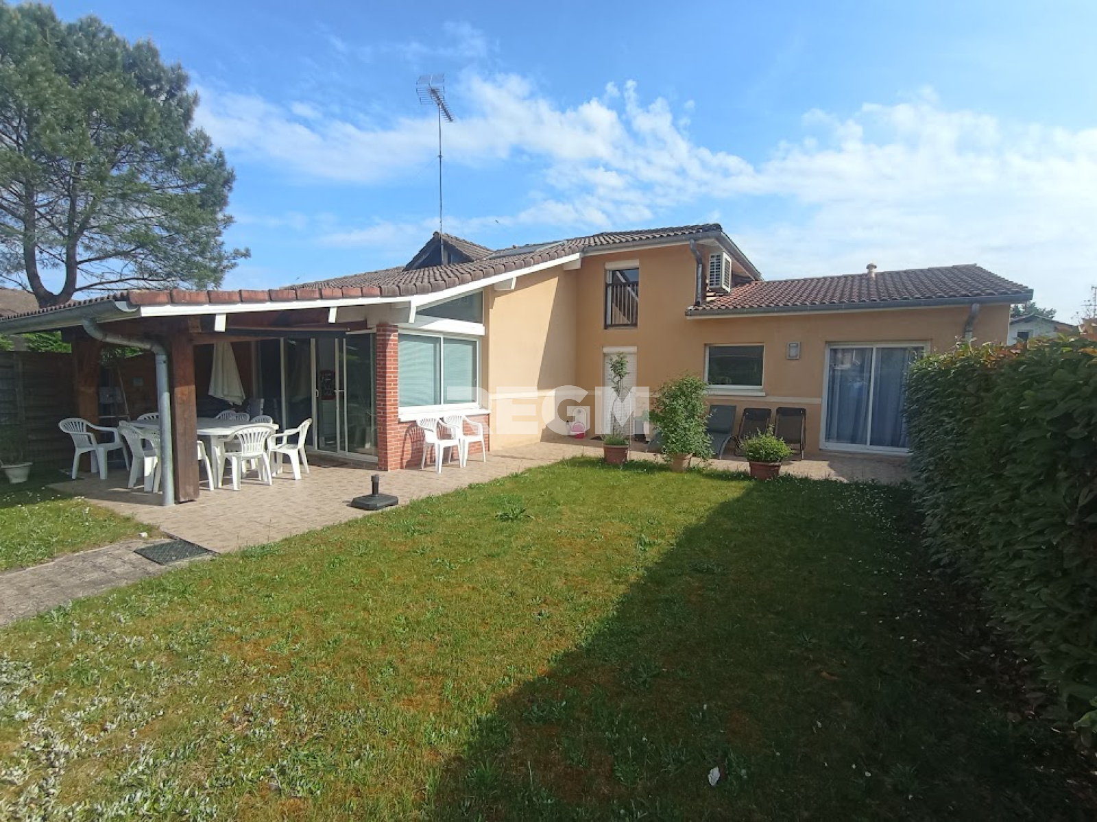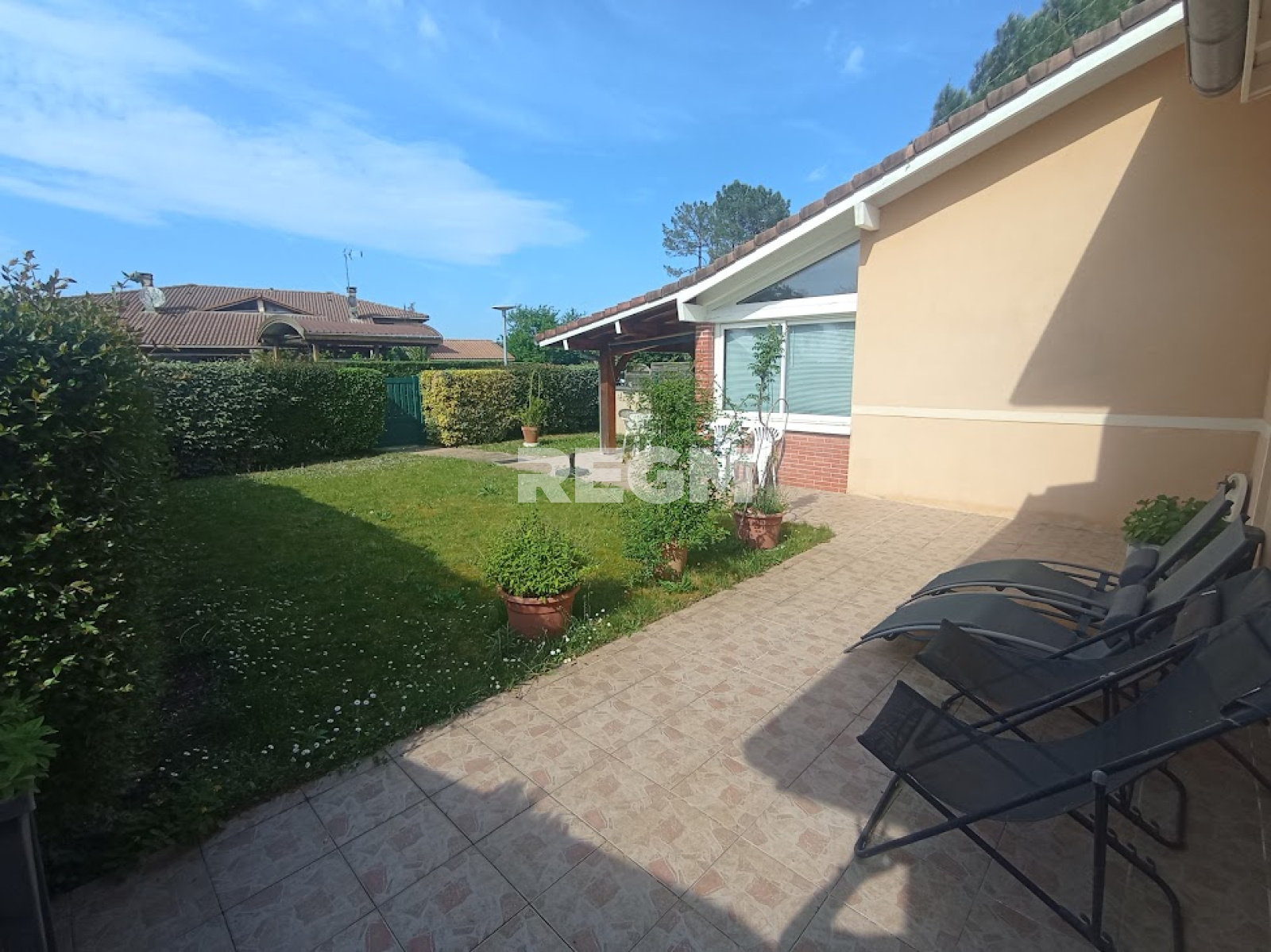 Côté extérieur, le bien dispose d'un jardin privatif et d'une terrasse couverte.