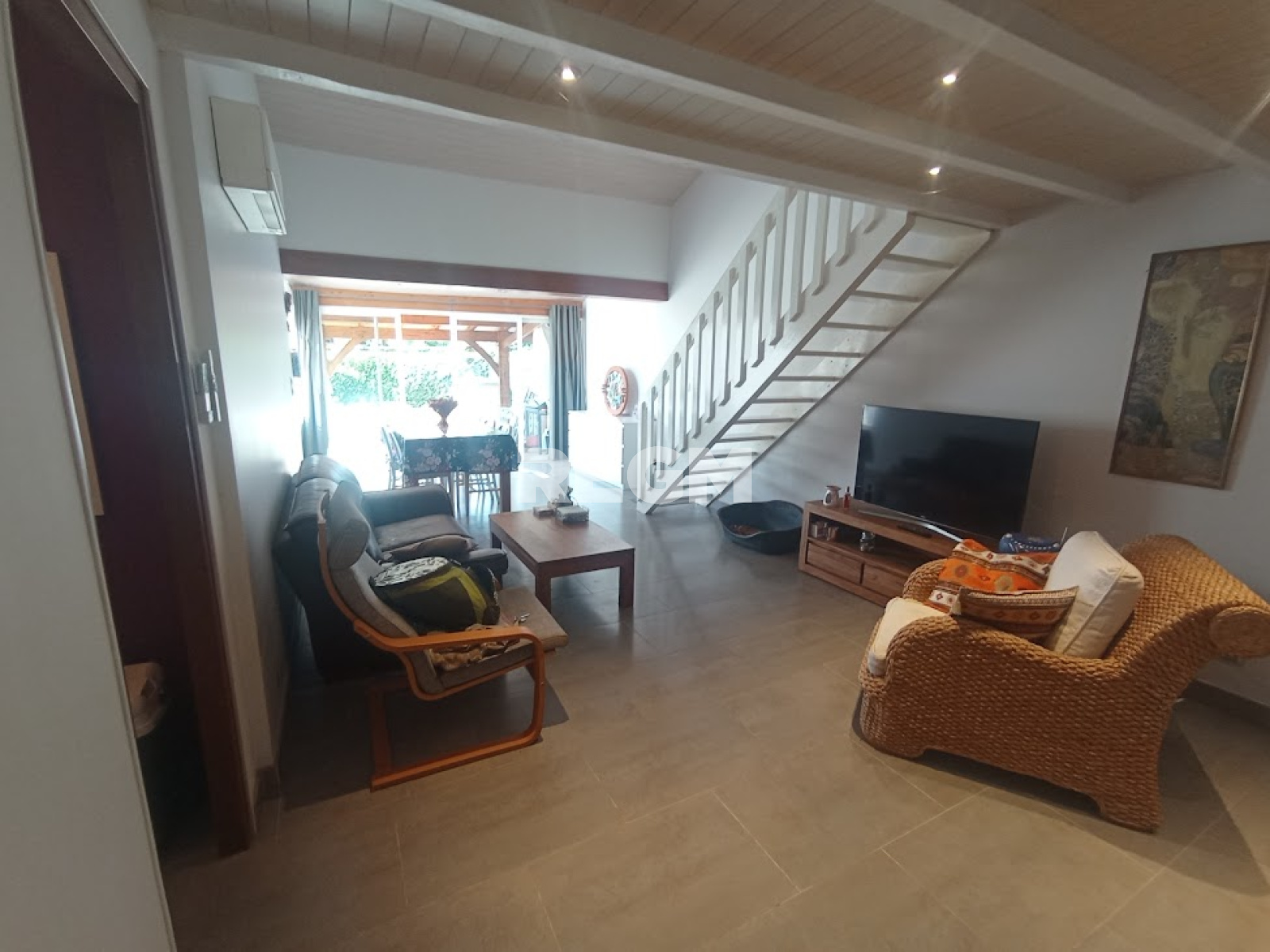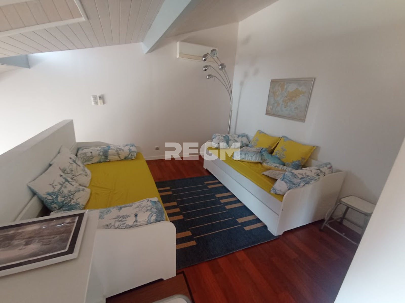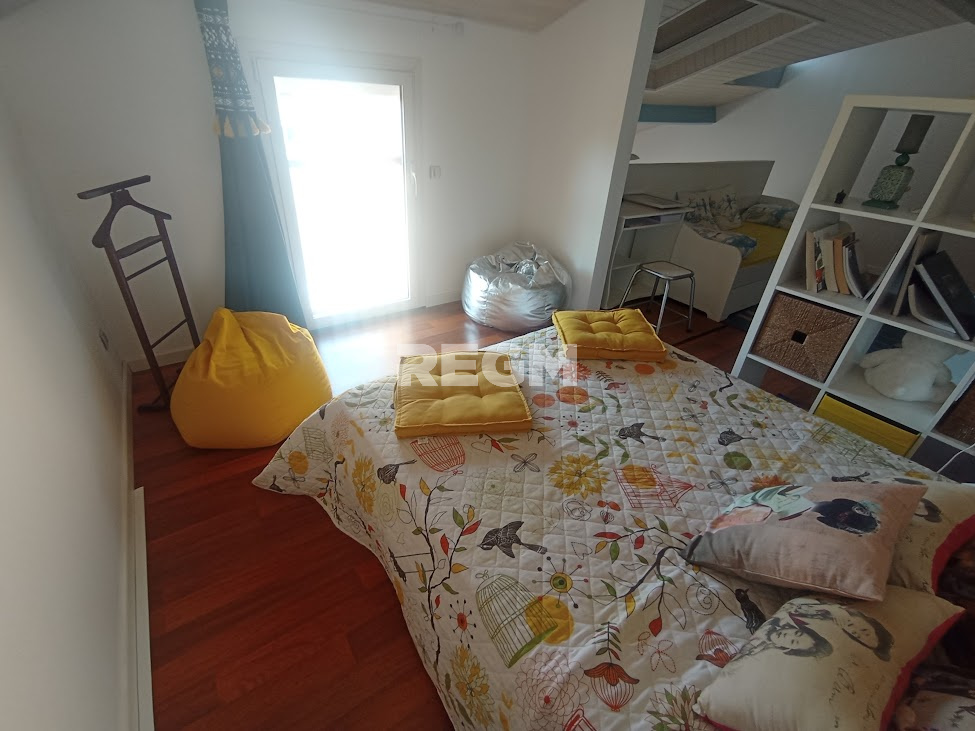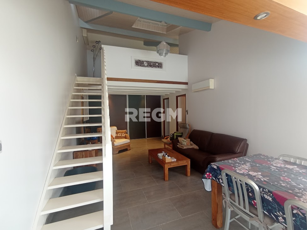 Composé d'une pièce de vie lumineuse, une cuisine indépendante, une salle d'eau , un wc, une chambre, un cellier et à l'étage une mezzanine avec salon convertible et coin nuit qui peut convenir pour six personnes. La climatisation est présente comme le double vitrage et les volets roulants.