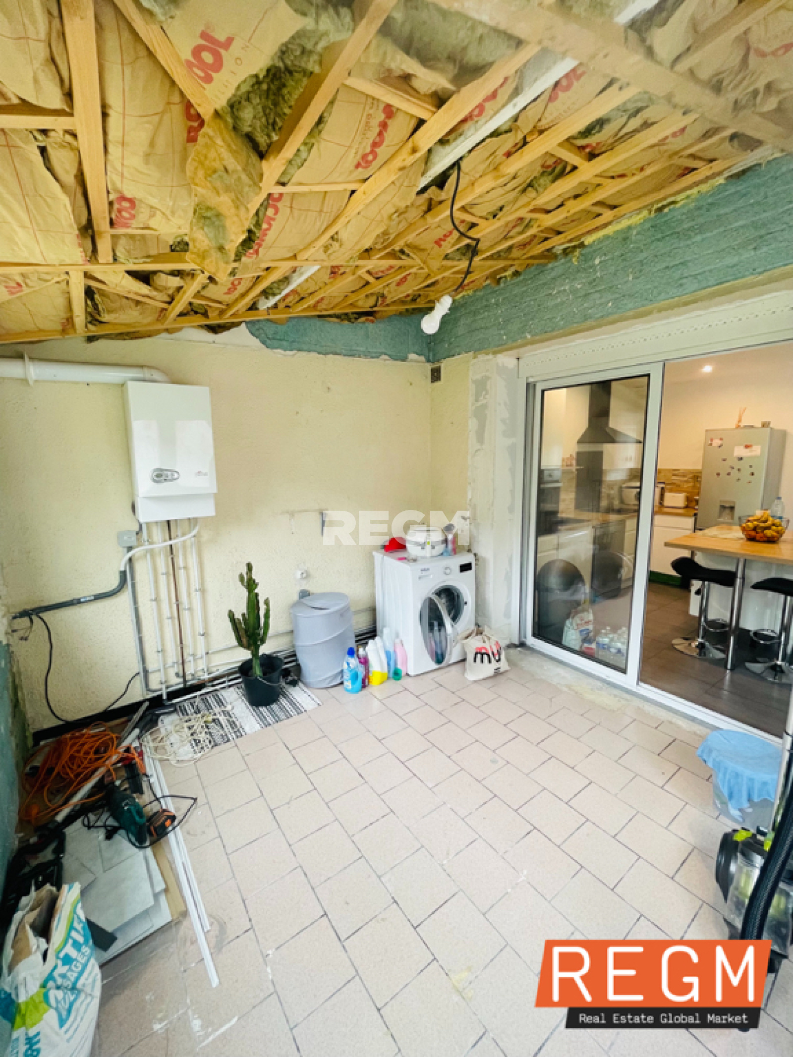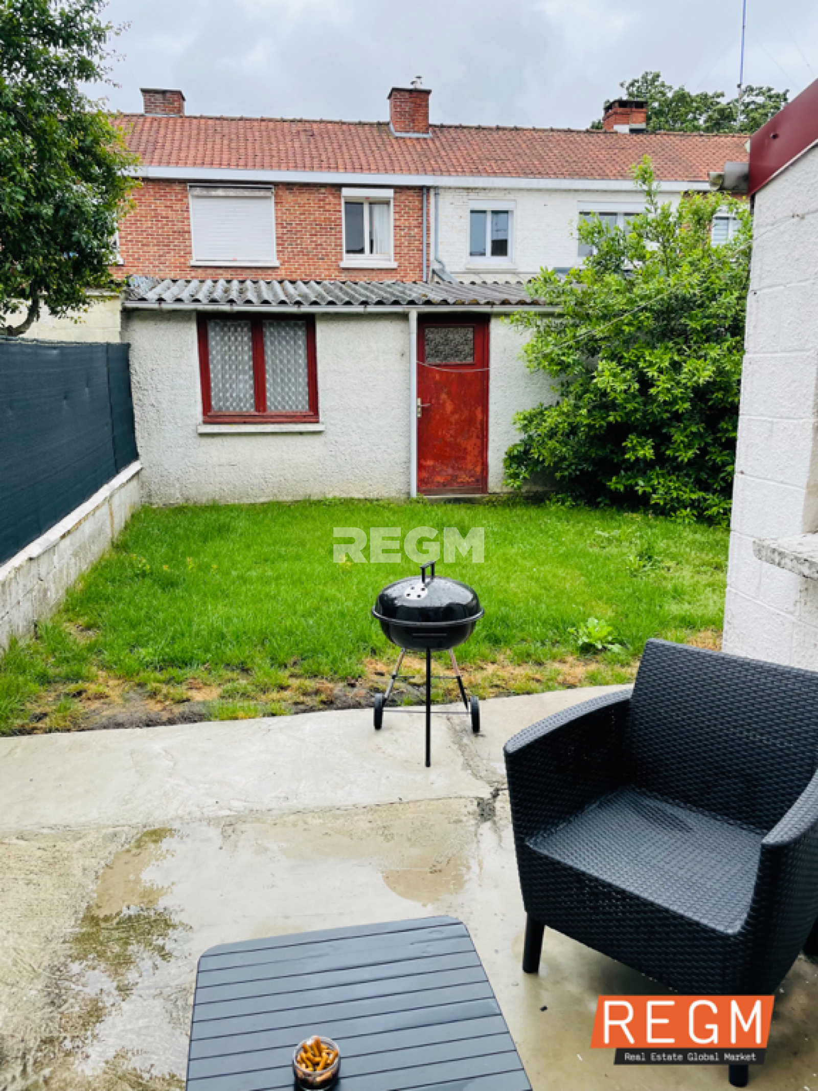 Exclusivité REGM !! Maison mitoyenne type bâtir de 94m2 avec jardin et dépendance offrant : - une entrée, - un double séjour, - une cuisine équipée ouverte, - un WC, - Une buanderie à rénover (de 10m2) à l'étage : - 3 chambres, - une salle de bain La maison comprend également un garage non attenant. Double vitrage